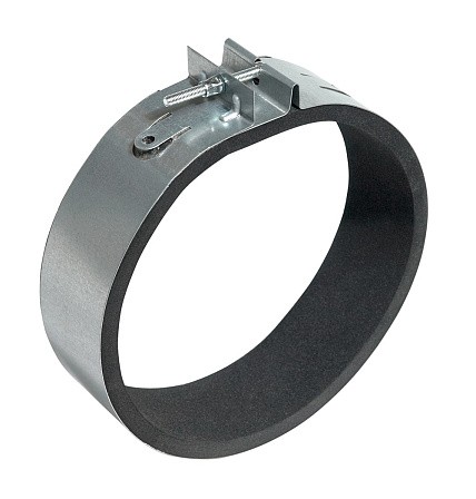 Быстросъемные хомуты облегчают установку и снятие элементов вентсистем. Хомуты изготавливают из оцинкованного стального листа, который изолирован слоем уплотнения, гасящего вибрацию и гарантирующего плотное соединение элементов.